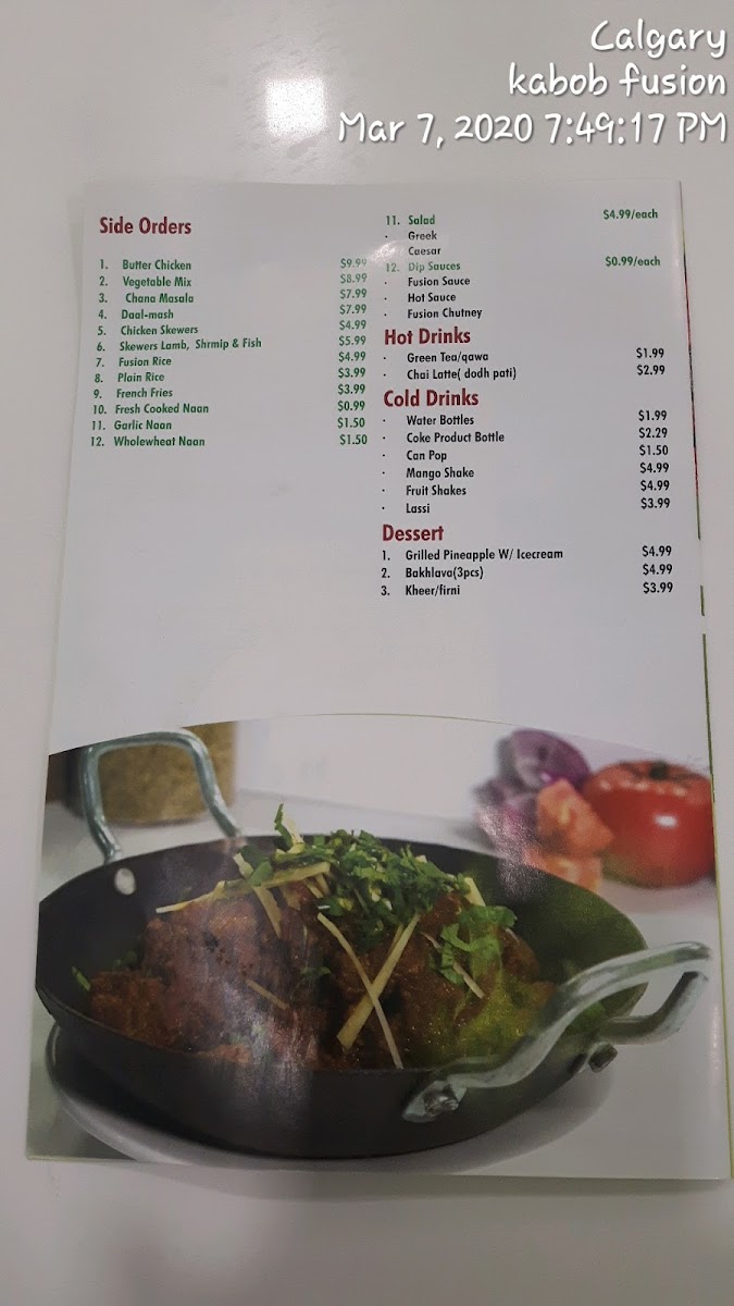 Welcome to Kabob Fusion, a delightful Afghan restaurant nestled in Calgary at 3131 27 St NE #25. This culinary gem offers a tantalizing array of authentic Afghan dishes, serving up rich flavors and vibrant aromas that will take your taste buds on a journey to the heart of Afghanistan.